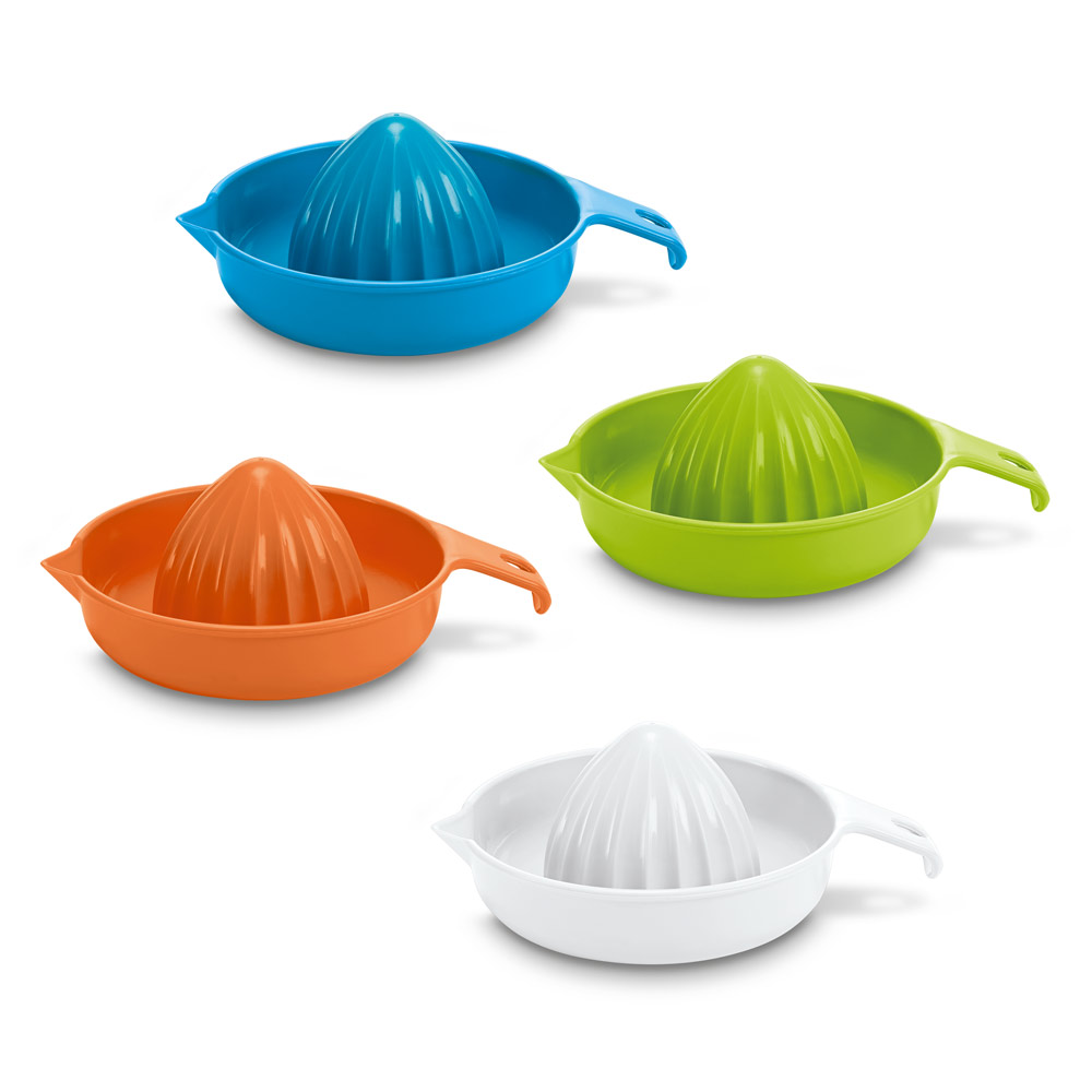 Espremedor personalizado de frutas em PP. Certificação EU Food Grade. 133 x 181 x 70 mm