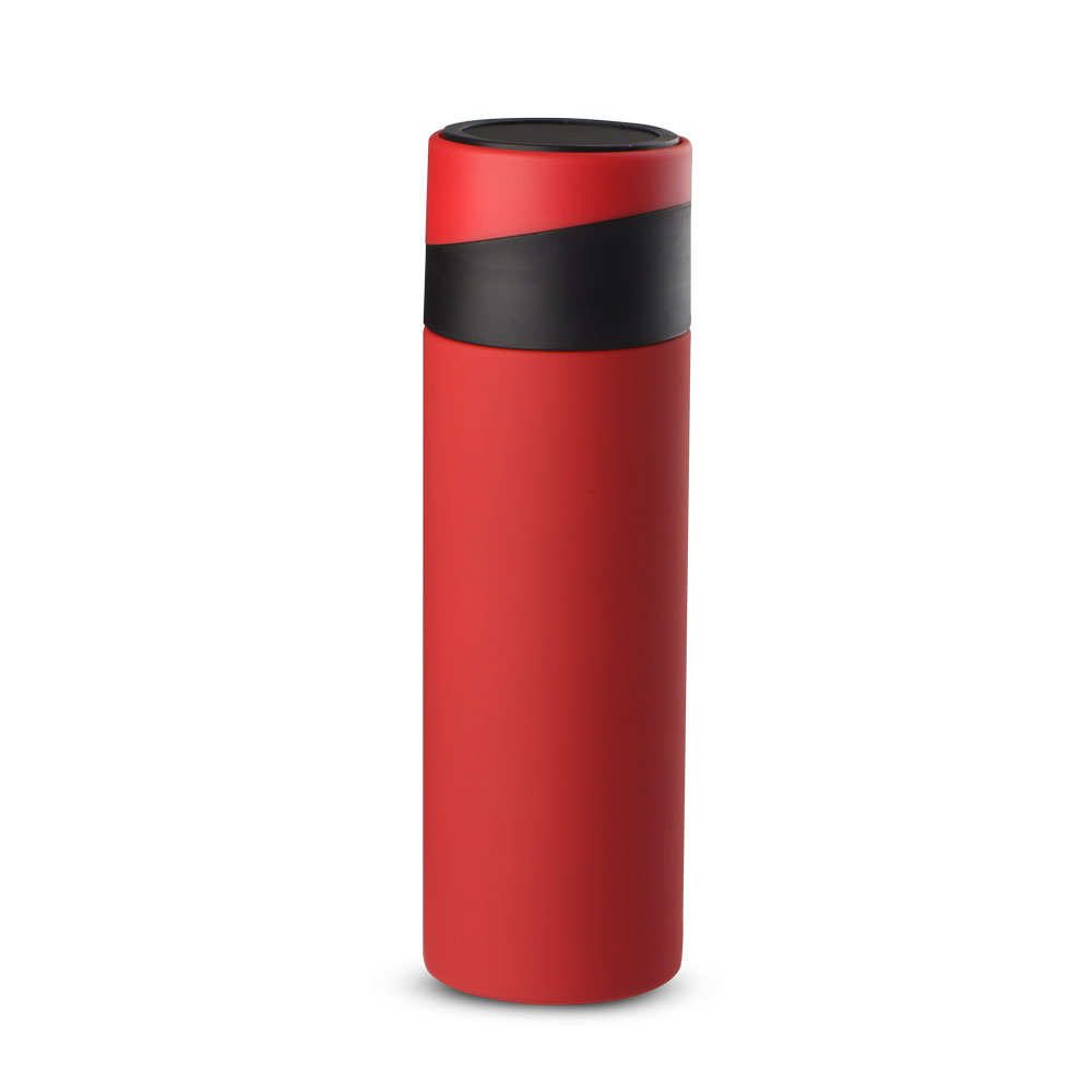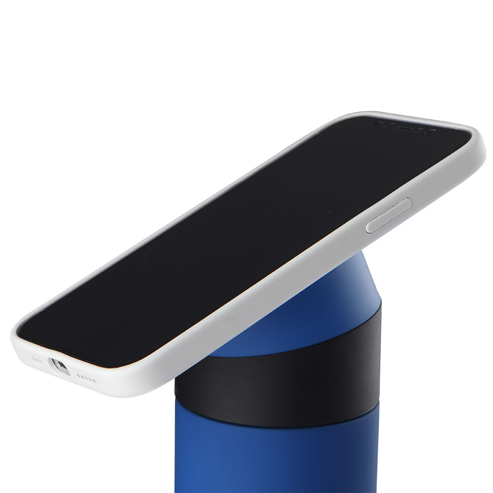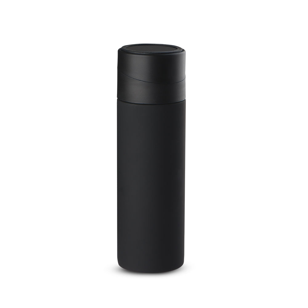 Garrafa térmica personalizada, em aço inox com parede dupla isolada a vácuo, com capacidade de até 400 ml. Tampa rosqueável com anel de silicone para vedação. Conserva a temperatura quente ou frio. Com apoio para celular na tampa. Conserva a temperatura quente por 5 horas e a temperatura fria por 8 horas.