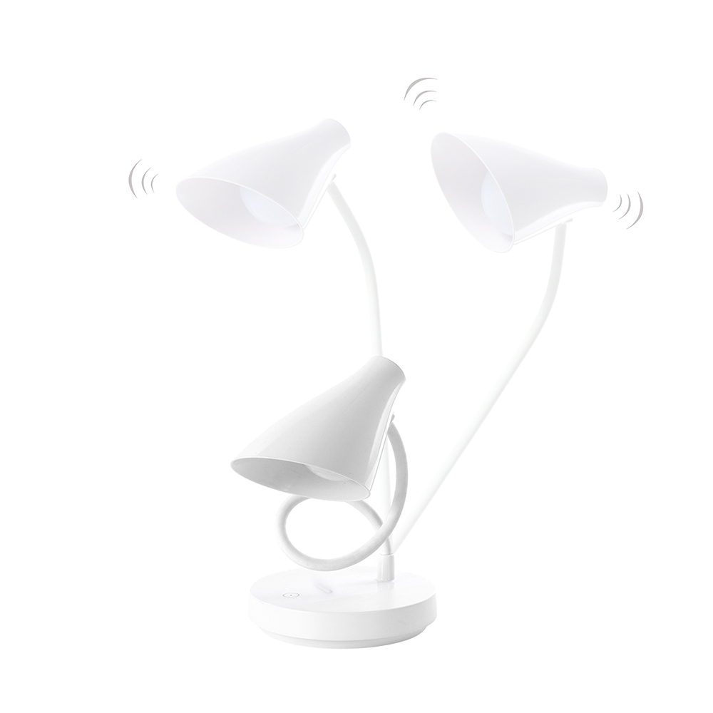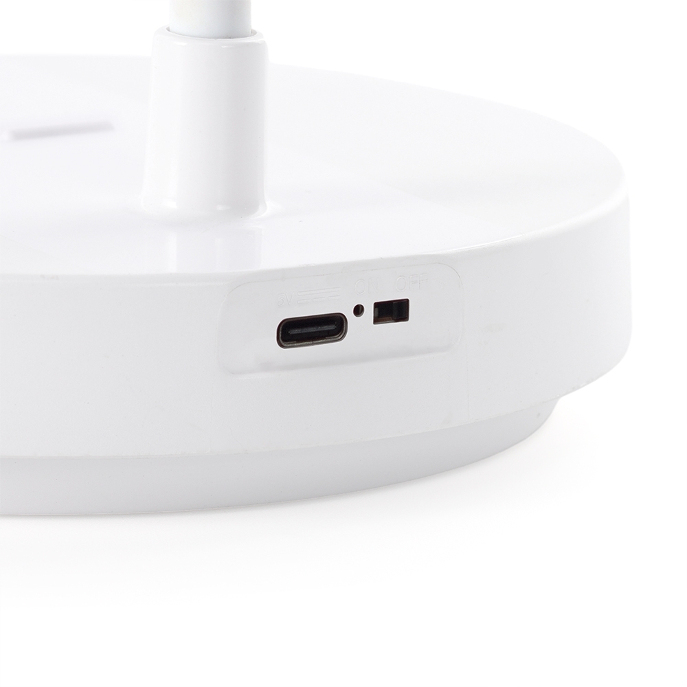 Luminária personalizada articulável em led recarregável e funcionamento touch, material plástico. Contém três estágios de iluminação com regulagem de intensidade touch: luz fria (branca), luz quente (amarela) e luz mista (branca e amarela). Base com botão para ligar e desligar. Acompanha uma bateria de lítio e cabo USB Tio-C para carregamento. Altura: Aberto 40cm; Largura: Base 12,7 cm; Espessura: Base 2,6 cm; Comprimento: Base 12,8 cm; Peso aproximado: 278g