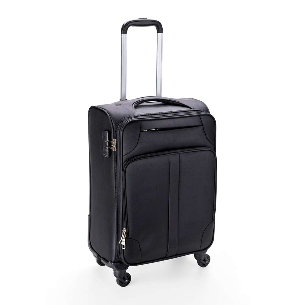 Mala de Viagem Personalizada padrão ANAC (Agência Nacional de Aviação Civil), confeccionada em poliéster de alta qualidade, com cadeado numérico TSA. Possui etiquetas de identificação embutidas na mala, sendo uma integrada ao cadeado e outra na parte de trás da mala, acoplada por estojo em couro sintético. Três compartimentos, bolso telado, cinta compressora para roupas, alça de mão em poliéster, puxador retrátil com regulagem de tamanho e quatro rodinhas 360º. Altura: 54cm Largulra 37cm Profundidade 24cm.