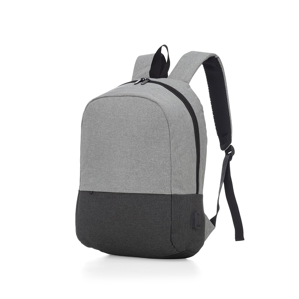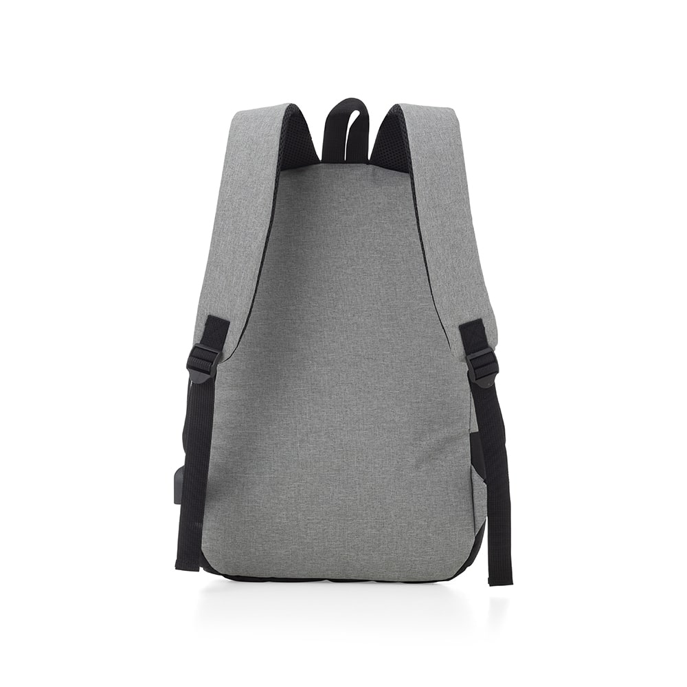 Mochila personalizada em Poliéster com capacidade para 22 litros. Contém bolso frontal com zíper, alça de mão em nylon, Porta USB lateral, e alças para as costas ajustáveis com revestimento antitranspirante. Possui bolso interno para notebook até 17 polegadas. Altura : 43 cm Largura : 29,5 cm Profundidade : 17,5 cm Peso aproximado (g): 454