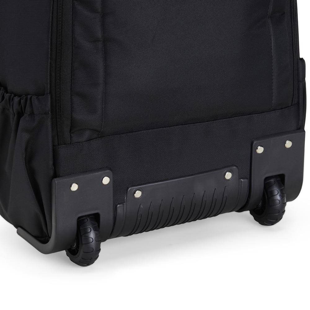 Mochila Rodinha Personalizada 27L e cadeado TSA. Possui padrão para bagagem de mão, conforme especificações ANAC (Agência Nacional de Aviação Civil) Confeccionada em nylon, contém alça revestida com espuma para um maior conforto, puxador retrátil com regulagem e botão acionador, alças para as costas escondidas no compartimento traseiro com zíper. Com 5 compartimentos, sendo um pequeno para carteira e canetas, dois medianos para documentos, bolsos nas laterais, bolso para notebook até 15,6 polegadas com divisórias para celular e forro com zíper. Possui duas rodinhas e freio em plástico, além de um sistema velcro para junção do compartimento das alças com a parte inferior, tampando as rodinhas enquanto transporta a mochila nas costas. Altura : 47,5 cm Largura : 32 cm Profundidade : 18 cm