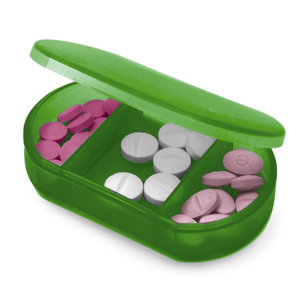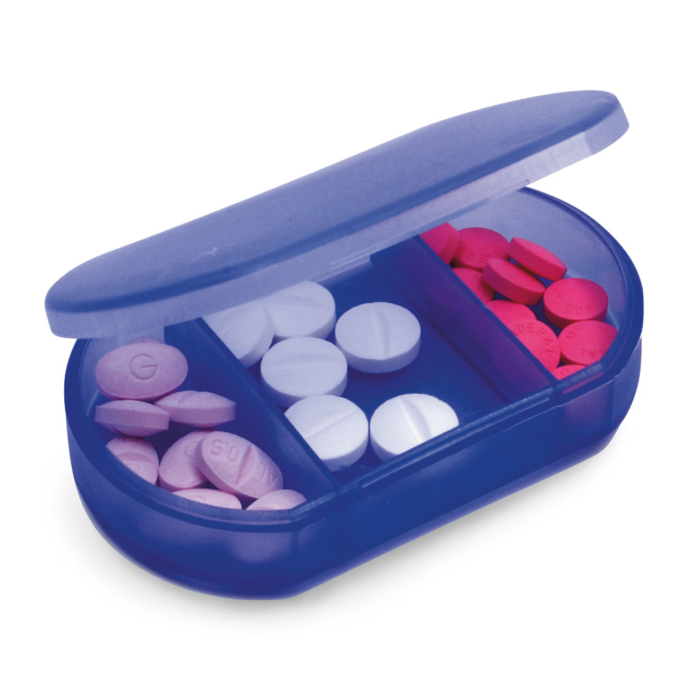 Porta comprimidos personalizado com 3 divisórias. Certificação EU Food Grade. 60 x 35 x 13 mm