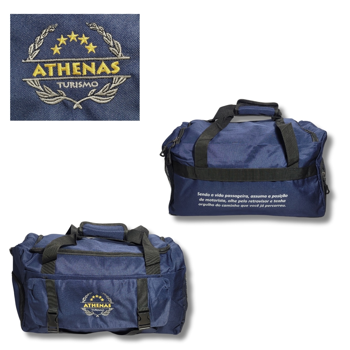 Bolsa de Viagem Personalizada Esportiva esportiva de 39 litros em nylon resistente à água com três compartimentos, sendo um deles exclusivos para tênis. Compartimento principal com bolso de zíper exclusivo para itens molhados. Com bolso lateral telado e alças de mãos com suporte de juntura, a bolsa contém alça transversal removível e alça para engate em malas de viagem.