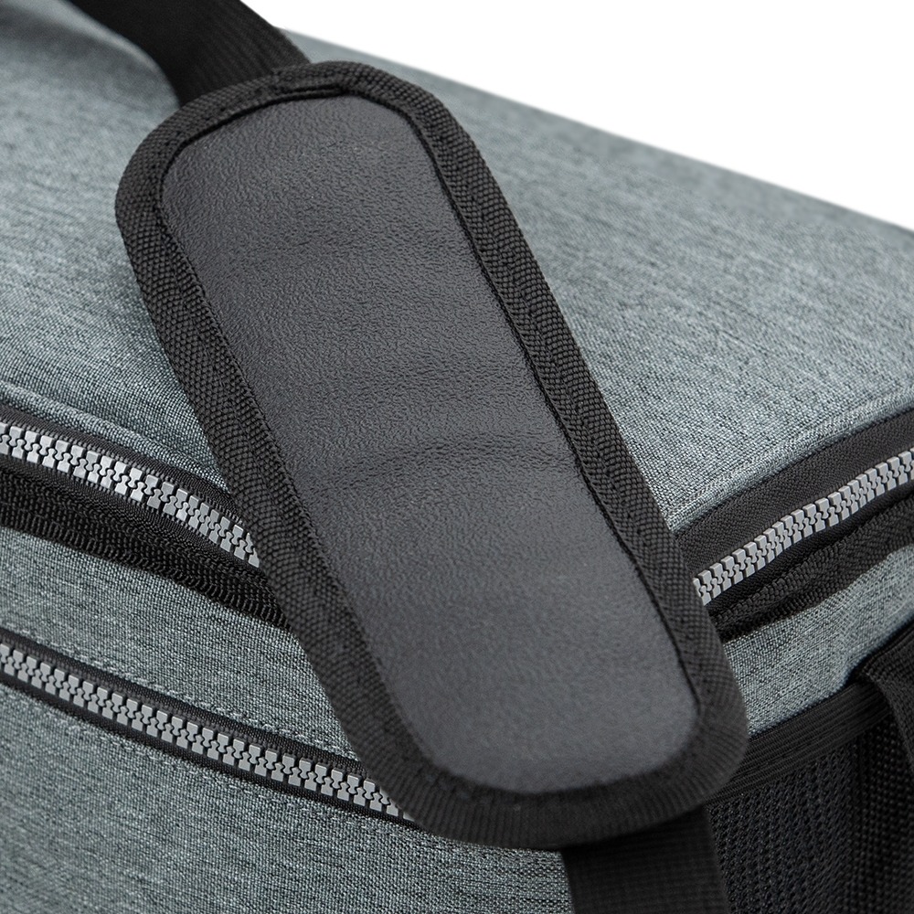 Bolsa Térmica Personalizada 10 litros com bolsos externos, contém bolso frontal com zíper, bolsos laterais telados e alça transversal regulável com apoio para ombro. Altura : 20 cm Largura : 27 cm Profundidade : 18 cm Medidas aproximadas para gravação (CxL): 9 cm x 23 cm Peso aproximado (g): 355