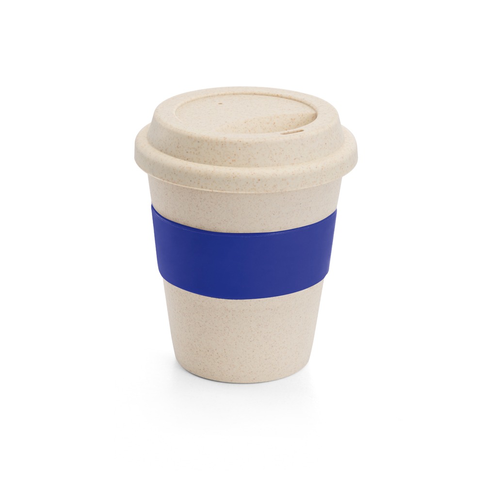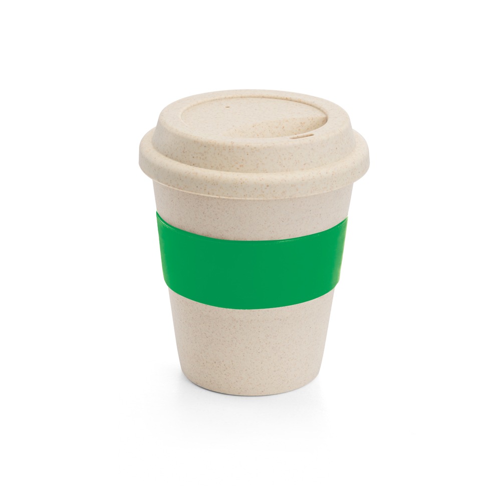 Copo Personalizado de viagem. Fibra de bambu e PP. Com banda em silicone. Capacidade: 380 ml. Food grade. Retirar tampa antes de colocar no micro-ondas. Ø95 x 114 mm.
