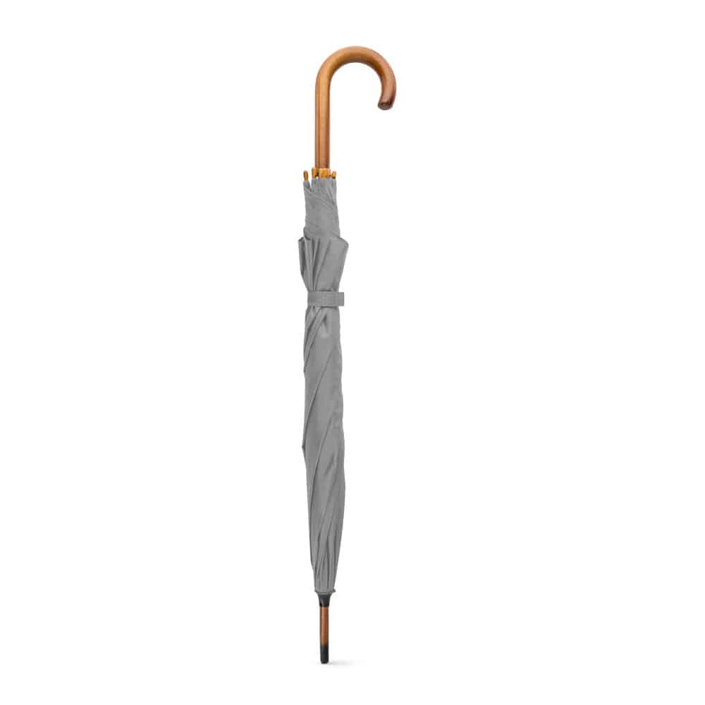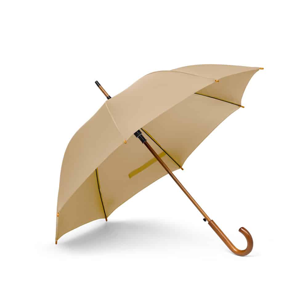 Guarda-chuva em poliéster pongee 190T, com abertura automática. Varetas em fibra de vidro, com pega e haste em madeira. ø1040 x 885 mm