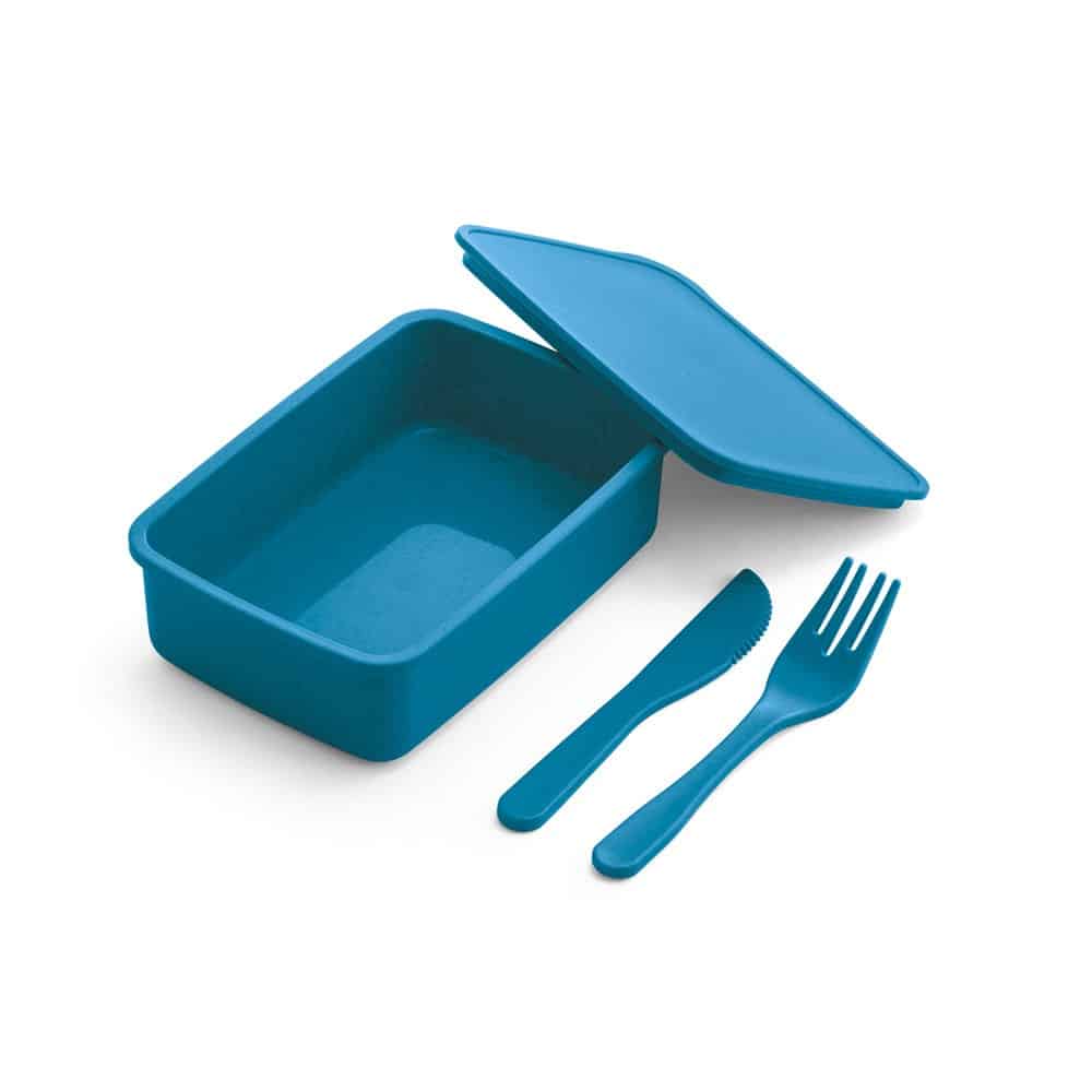 Marmita Personalizada. Fibra de bambu e PP. Com 2 talheres: garfo e faca. Fecha com banda elástica. Apto para microondas (retirar a tampa). Food grade. 165 x 111 x 50 mm