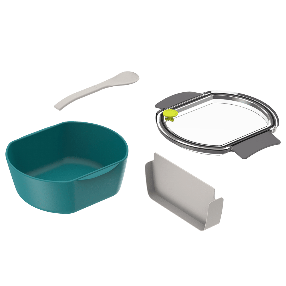 Produto prático, versátil e com capacidade para 700ml, ideal para levar refeições saudáveis para qualquer lugar. Possui presilhas para fechamento com segurança, tampa com vedação em silicone, talher e divisória interna removível para separação dos alimentos. Pode ser utilizado no microondas (sem a tampa). Livre de Bisfenol (BPA Free).