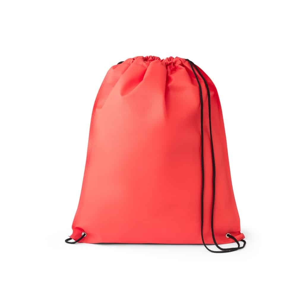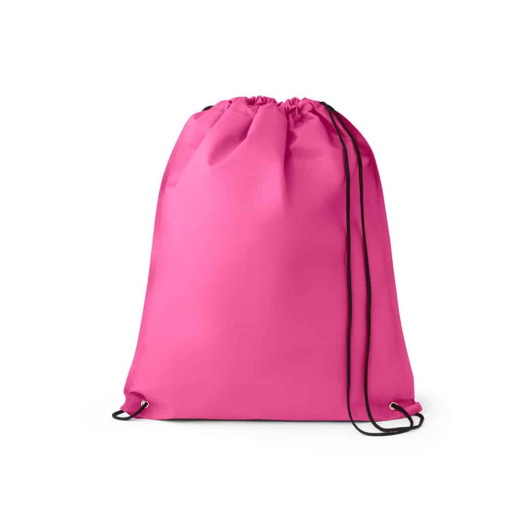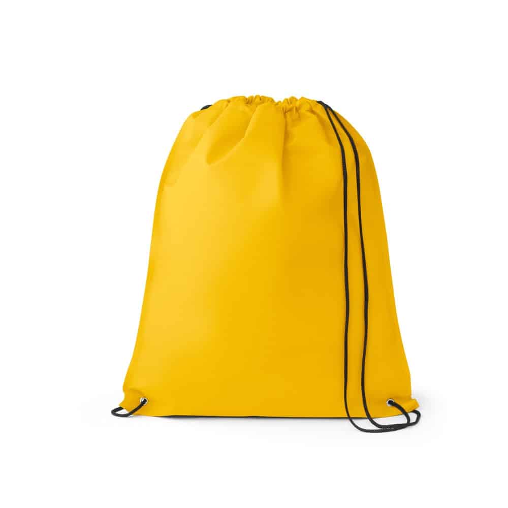 Mochila saco personalizada em non-woven (80 m/g²) termo-selado com ilhós de metal e cordão 4/1 preto. 330 x 400 mm.