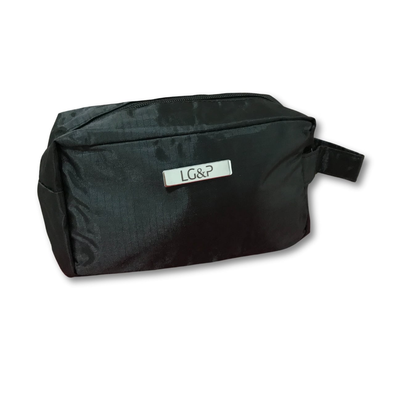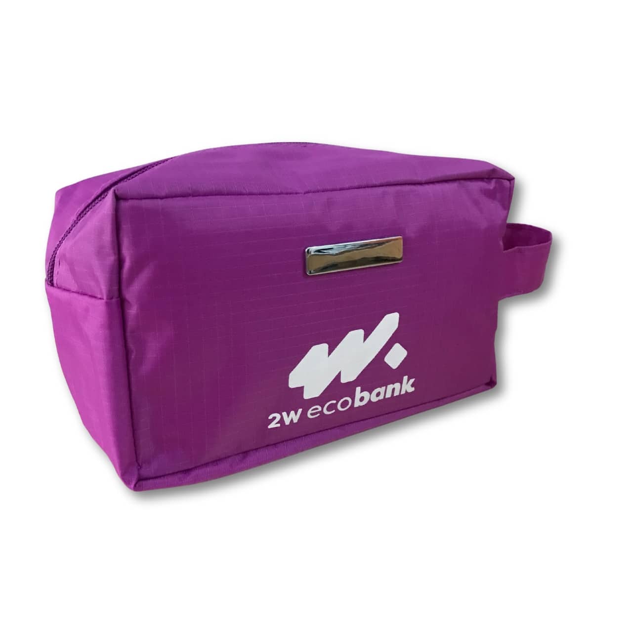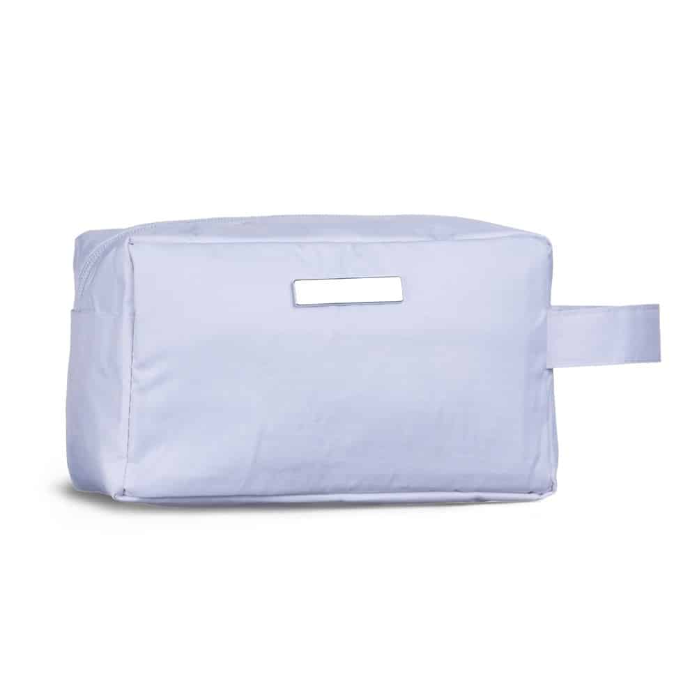 Nécessaire personalizada de pvc resistente à água com plaquinha metálica fixa.