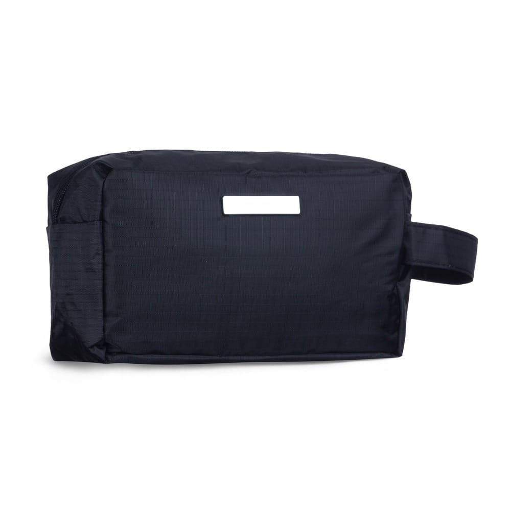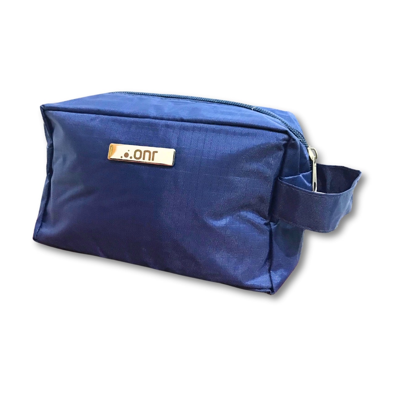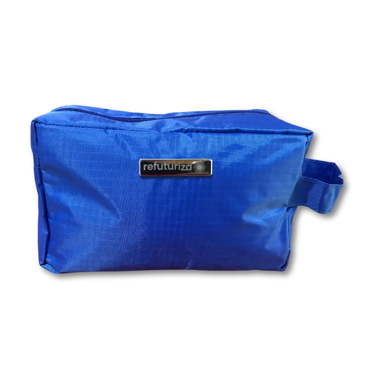 Nécessaire personalizada de pvc resistente à água com plaquinha metálica fixa.