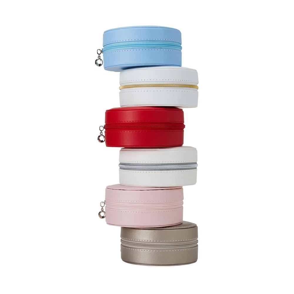Porta Joias Personalizado de couro sintético com revestimento aveludado. Possui compartimentos internos para anéis, brincos, pulseiras e colares.