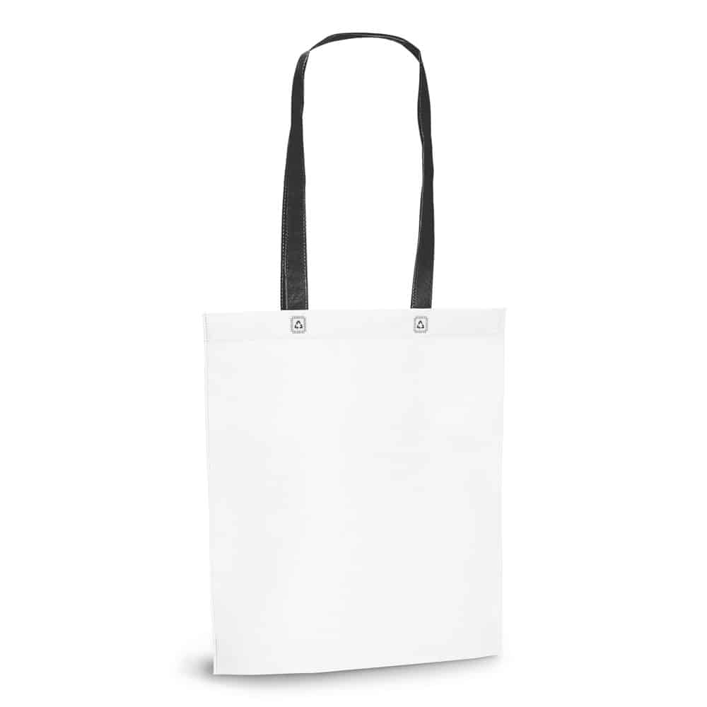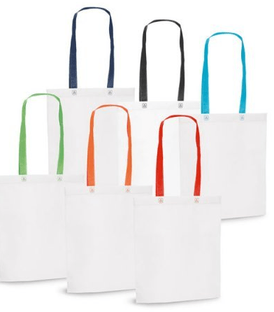 Sacola Personalizada TNT 80 g/m². Termo-selado. Alças de 55 cm. 330 x 390 x 80 mm.