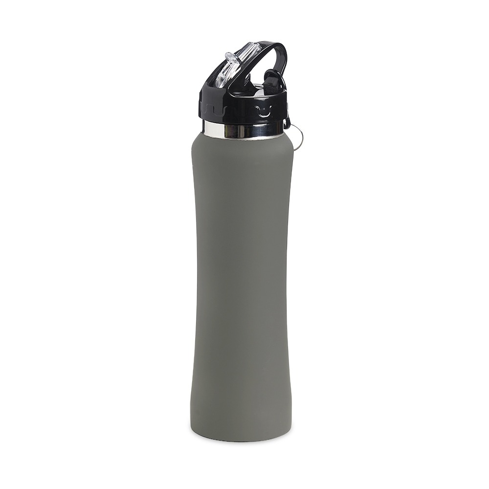 Squeeze personalizado de inox com capacidade de 750ml, tampa plástica com bico de canudo. Acompanha mosquetão. Altura: 27,6 cm. Largura: 7,4 cm. Peso aproximado (g): 182.